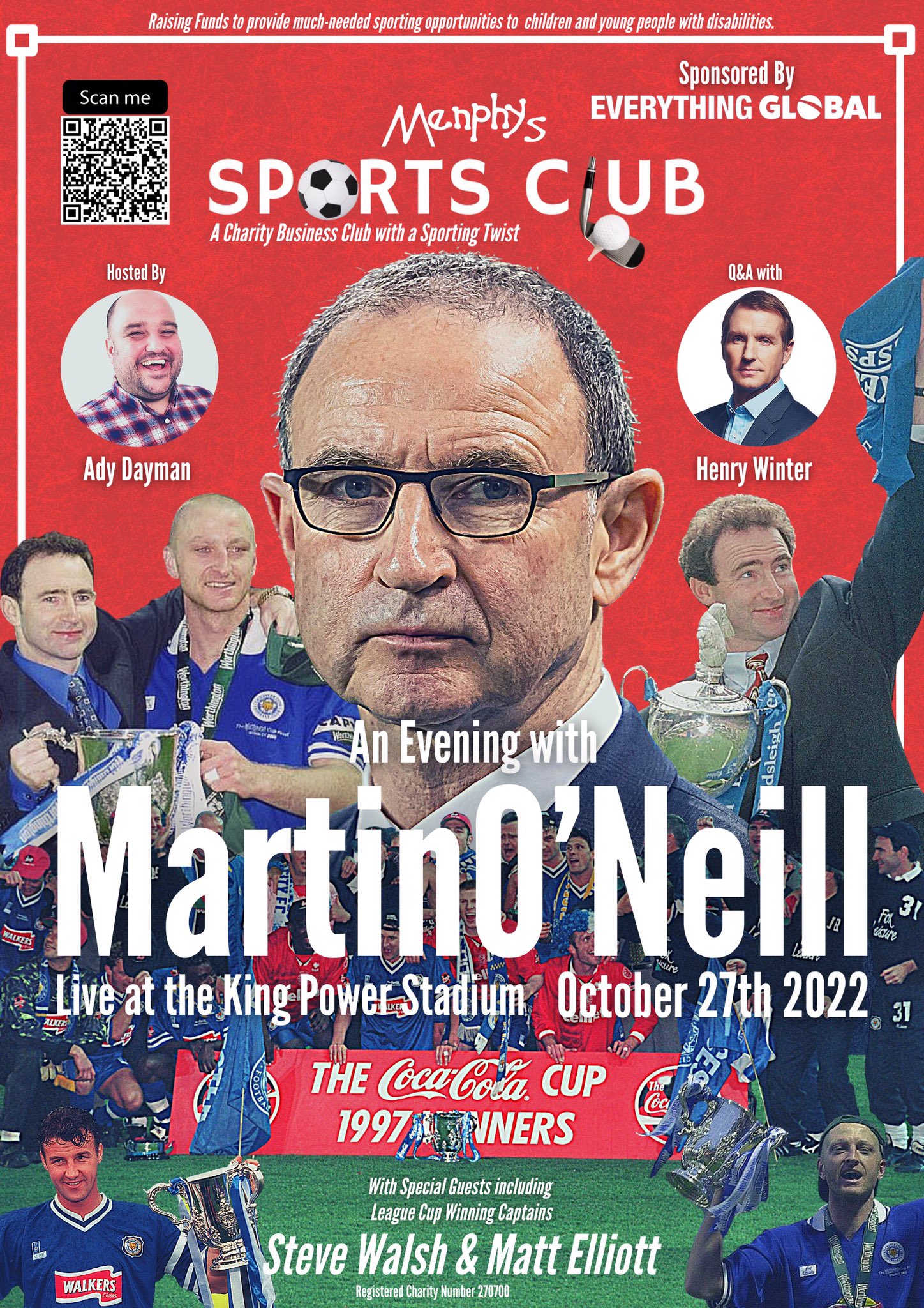 2022 marks 25 years since Leicester City lifted the League Cup. Now, to mark the anniversary, former Leicester City manager Martin O’Neill is returning to King Power Stadium for a special fundraising evening with Menphys on Thursday 27 October.