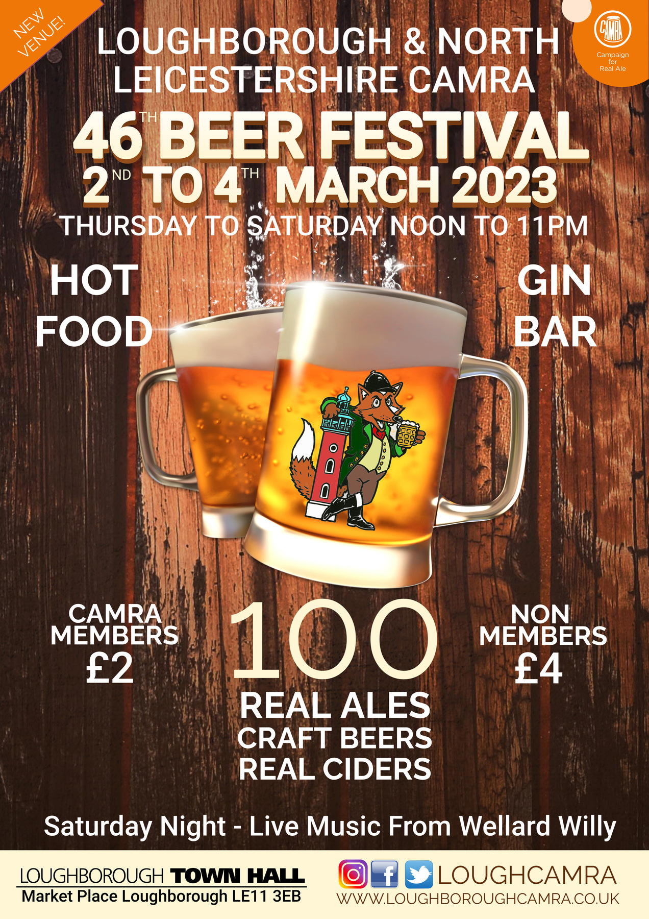 2 – 4 March 2023 – Loughborough & North Leicestershire Beer Festival, Loughborough Town Hall