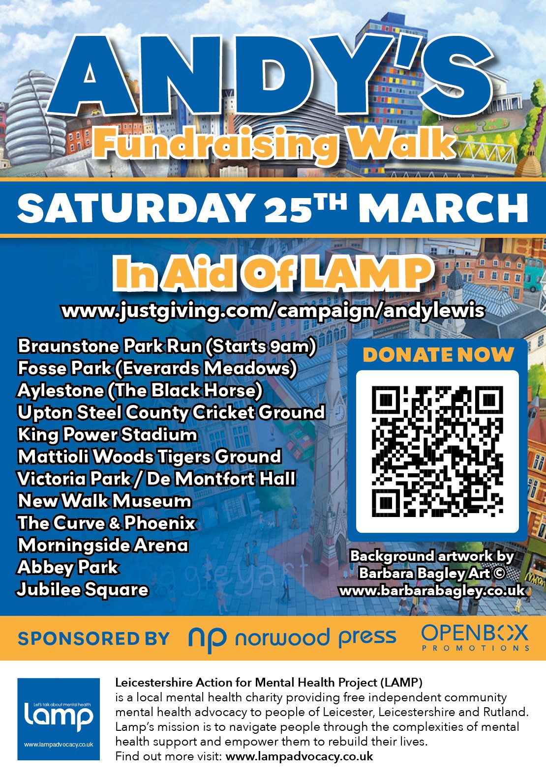 You can support Andy’s Leicester Landmarks Walk by donating HERE or EMAIL him to join in the walk on Saturday.