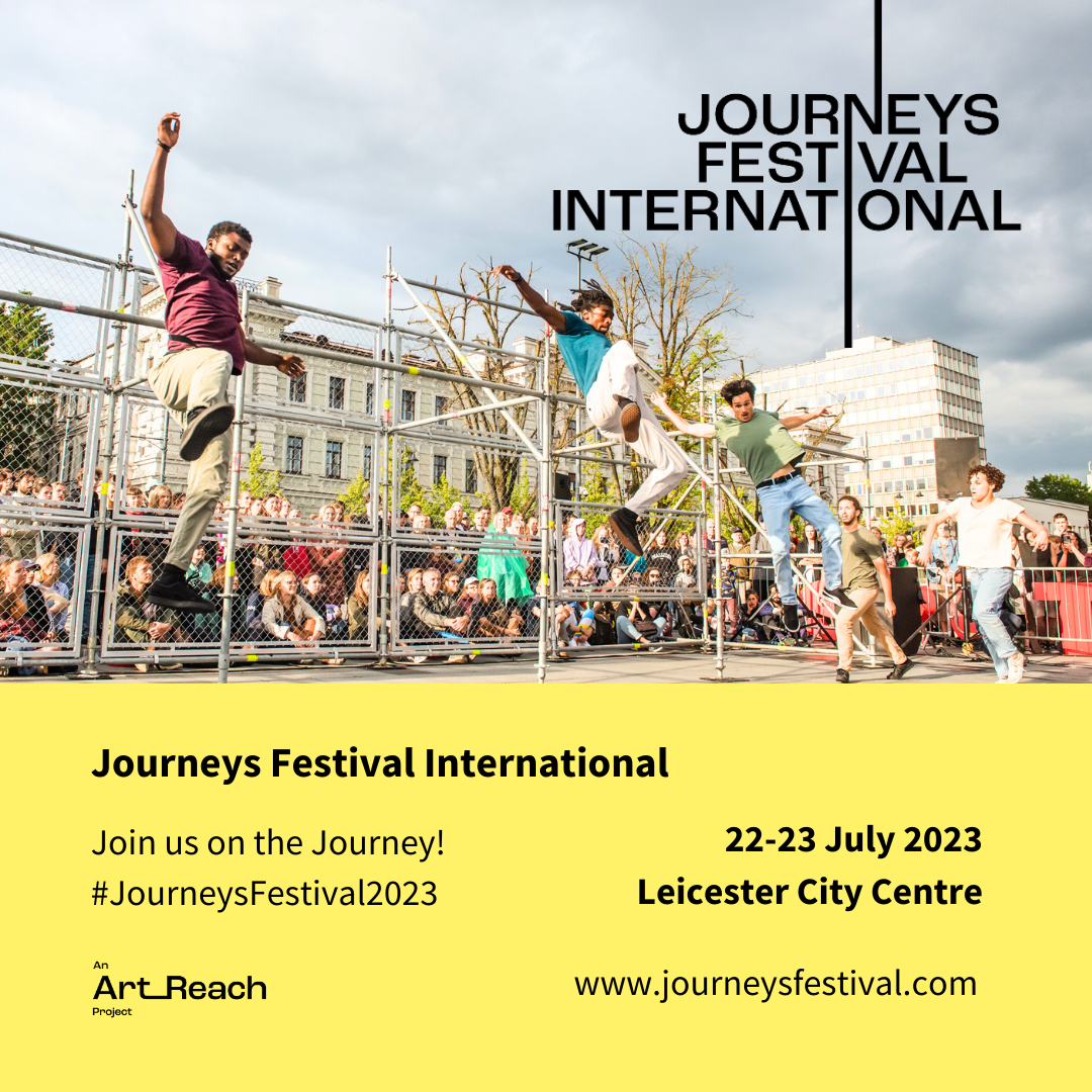 Stephen Munn, Interim Creative Director at Art Reach commented – “Journeys Festival International is a free festival celebrating the incredible diversity of Leicester. We at Art Reach are proud to be an Arts Council England National Portfolio Organisation supported through public funds to present amazing work across the City – this is a festival for the people of Leicester so please enjoy and expect the unexpected!”