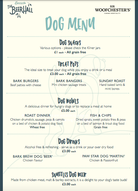 Following their recent little refresh at the Beer Hall, Everards has launched a new dog menu.