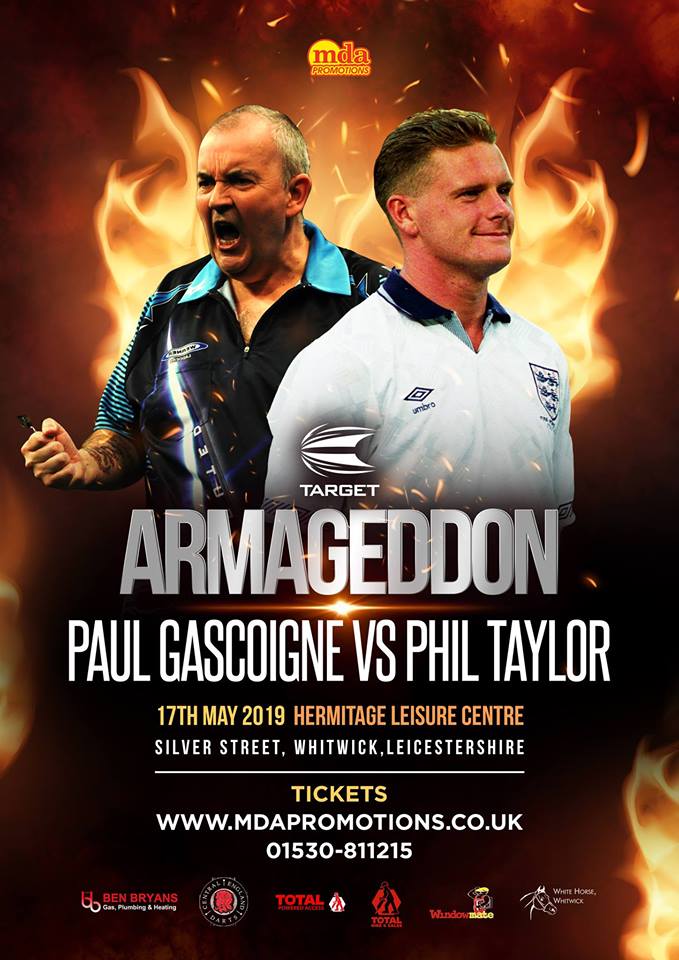The game between the two will be the first match of the full Armageddon darts event taking place that evening, as Gazza takes on the world’s greatest darts player in a 1 leg 701 game.