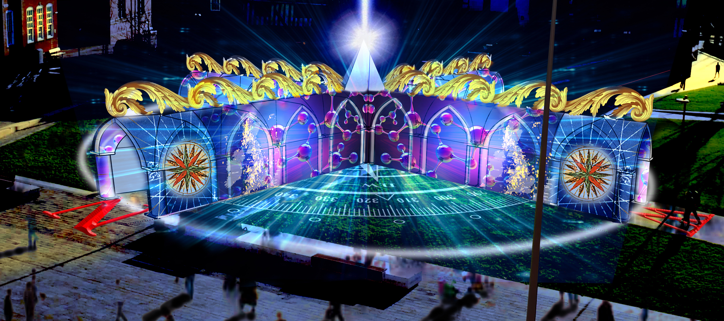 The Compass has been designed by Illuminos, who are brothers Matt and Rob Vale, together they have been creating visually inventive, memorable projection artworks and experiences for over 10 years. Working on large scale projections and illuminations, past projects have included installations at Les Troyens for Lyric Opera, Chicago, US and the 2017 Capital of Culture closing ceremony in Paphos, Cyprus.