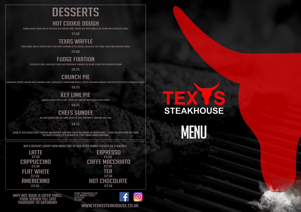 Texas Steakhouse opens its doors on Market Street today (Thursday 16 May) and here’s a look at the menu.